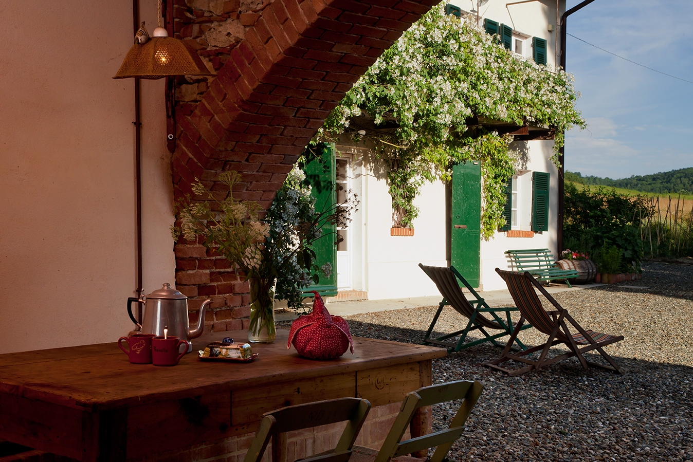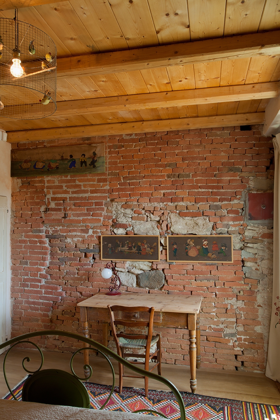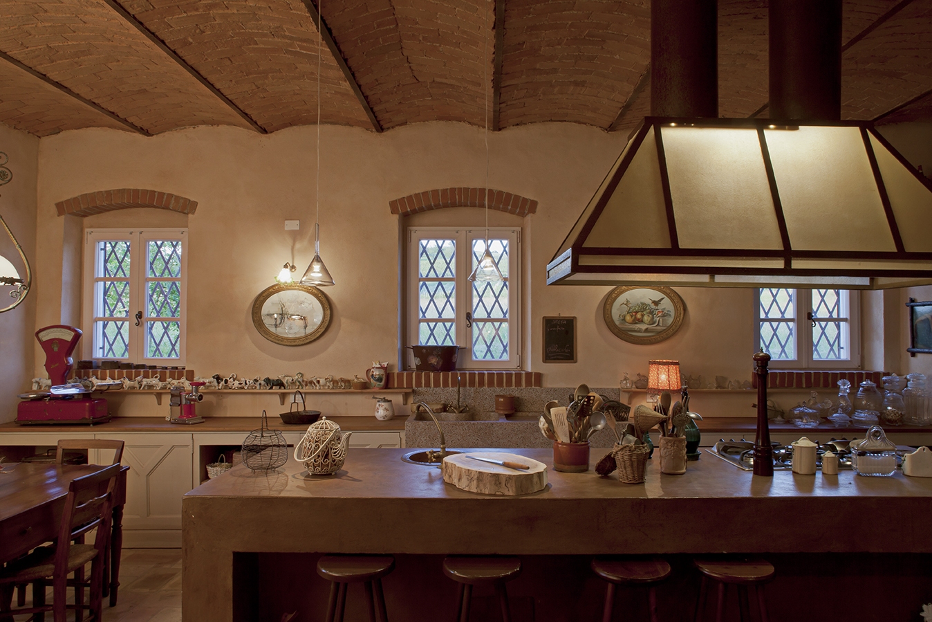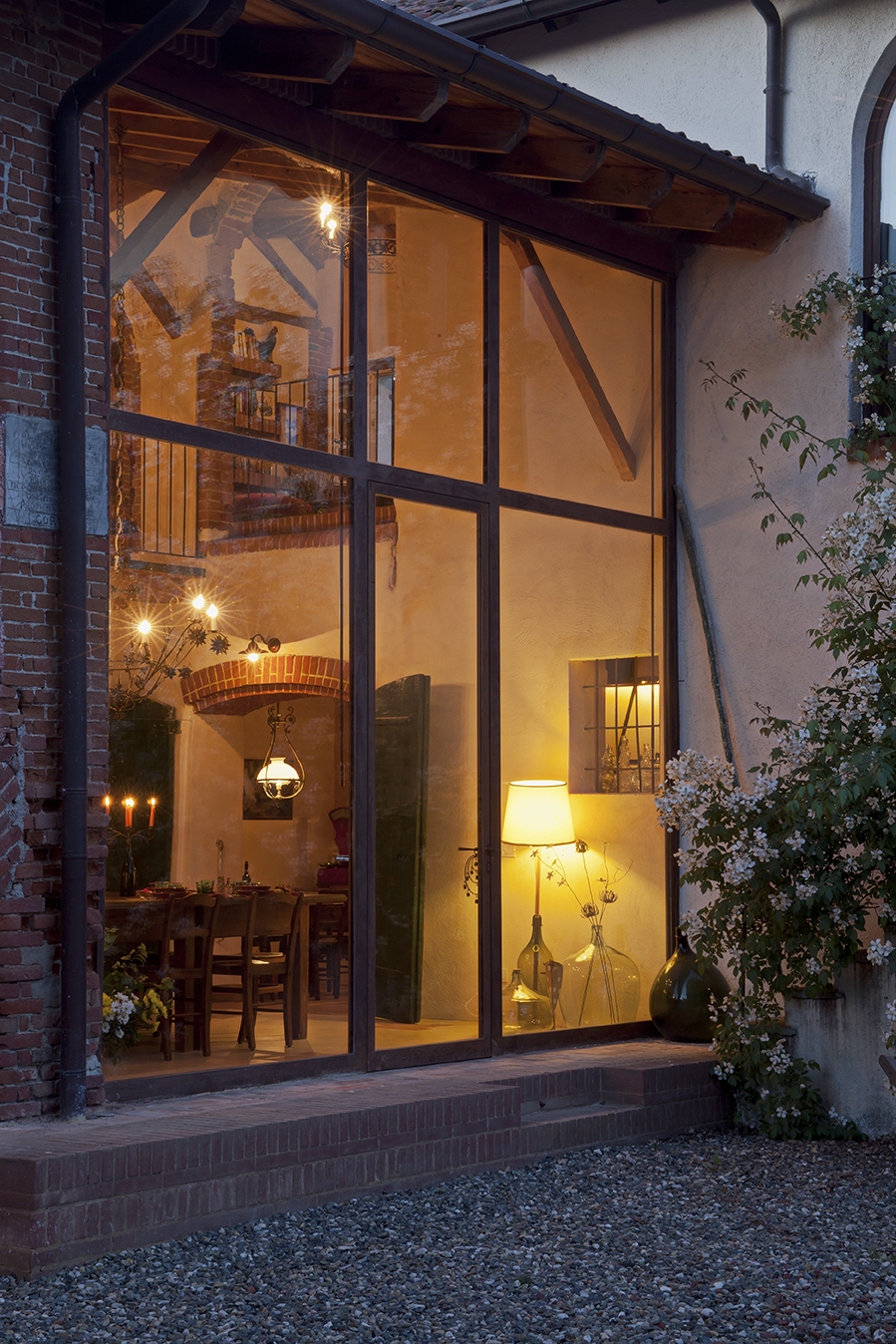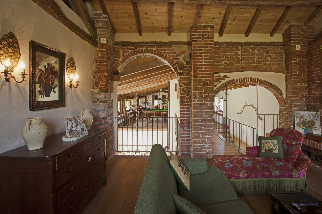 Si sceglie il fienile come spazio da trasformare in ingresso e come fulcro della convivialità in cui sostare attorno ad una grande tavolo quadrato.