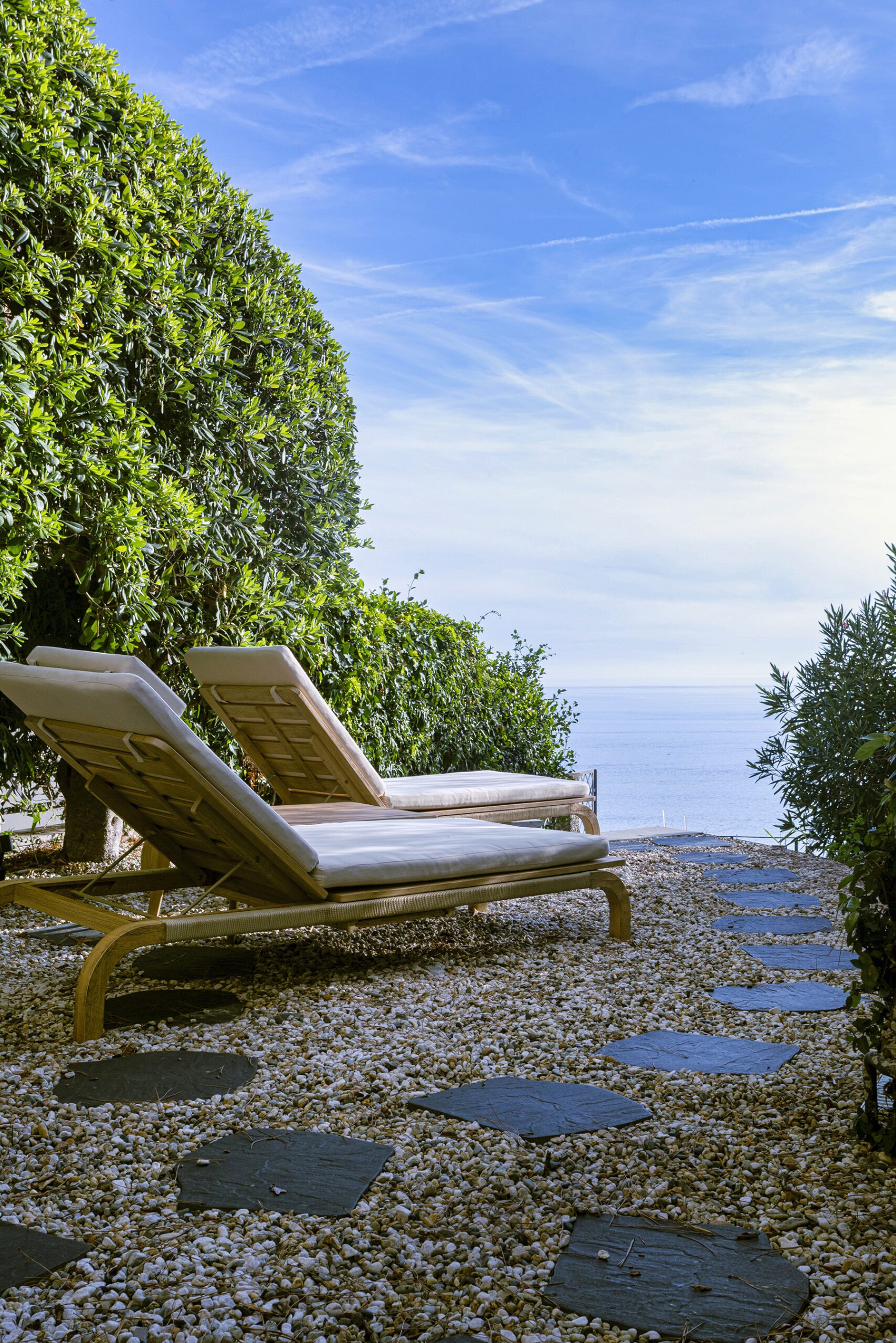 La villetta unifamiliare sul promontorio di Chiavari si affaccia sul mare, immersa nel verde del suo giardino. Pensata come una seconda casa, è un rifugio contemporaneo che richiama l’atmosfera rilassata di una dimora di campagna.