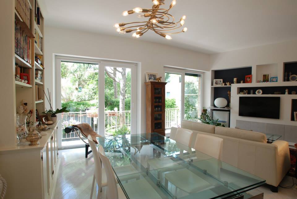 L’appartamento di 110 mq al piano è stato ampliato mediante un collegamento interno a quello che era il locale cantina, diventato una vivacissima sala giochi per le bimbe, con bagno annesso.